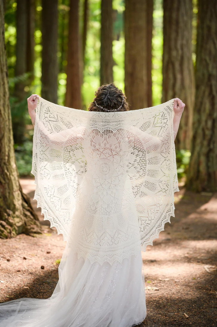 «Моя свадебная шаль. Я до сих пор не могу поверить, что я сделала ее сама, да еще и закончила вовремя!»
