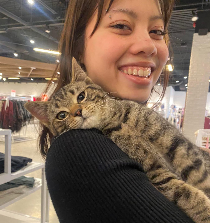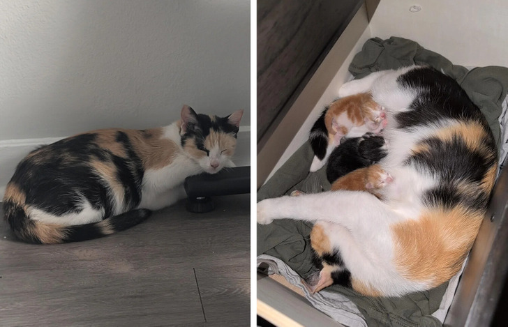 «Нашла этого котейку спящим возле моего дома в холодный день. Кажется, я обзавелась новым членом семьи»