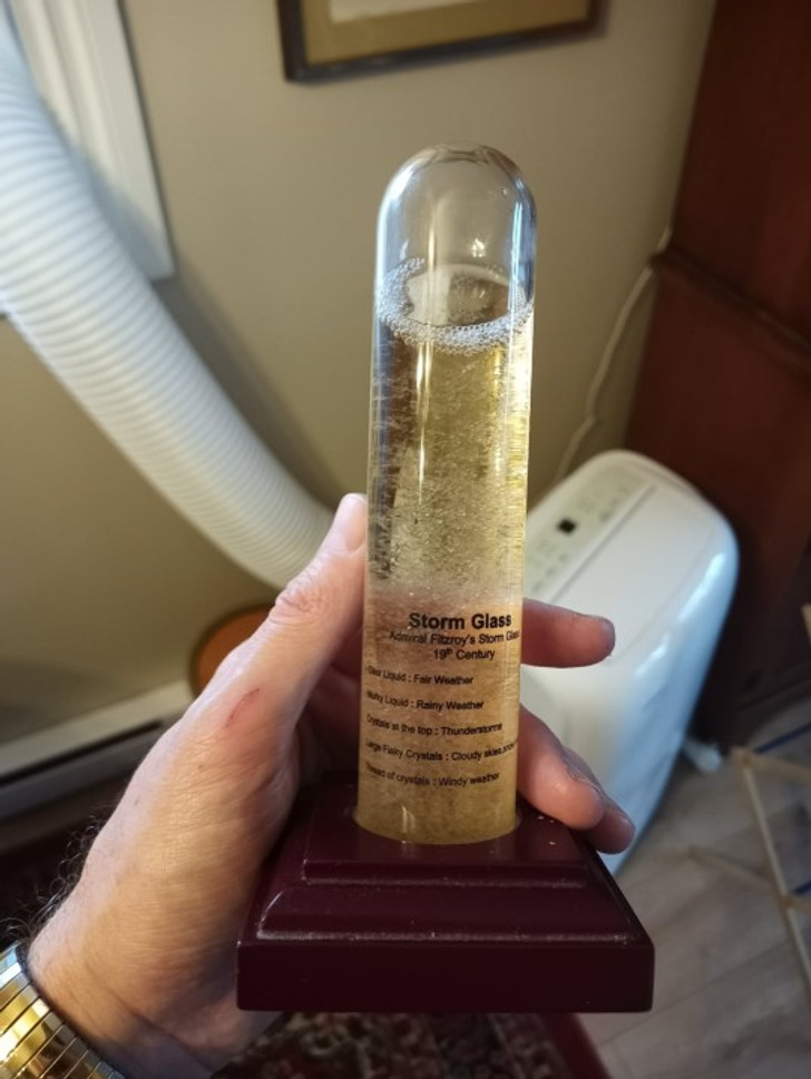 химический барометр .оч интересная штука! на маркетах продаются поизящней и посовременней, можно отлично украсить интерьер.