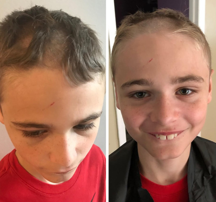 «Слева — результат самостоятельной стрижки брата. Справа — мамина попытка спасти положение»