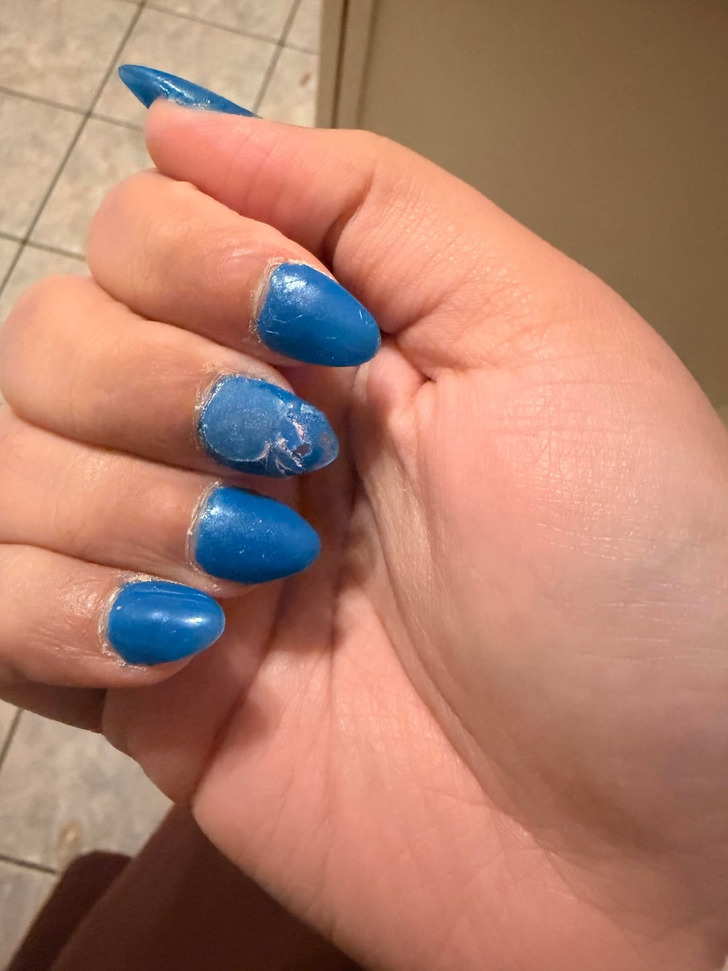«Раньше я делала маникюр в салоне, но сейчас приходится экономить. Весь вечер потратила на маникюр: база, лак, сушка, ждала полчаса, чтобы наверняка. А утром проснулась и увидела это»