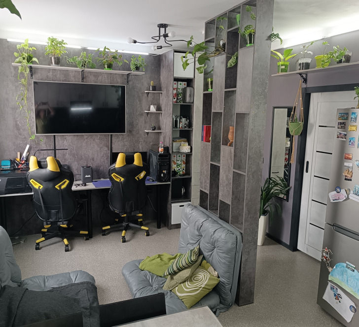«Мои попытки создать комнату внутри комнаты. Я живу в крошечной студии, пришлось проявить изобретательность, чтобы она казалась просторнее»