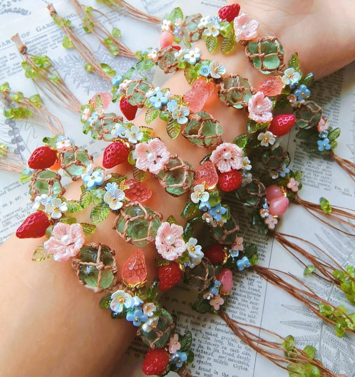 «Я плету браслеты. В этот раз сделала несколько клубничных»