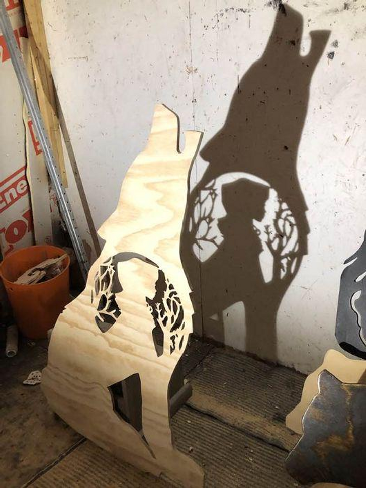 «Мое хобби — вырезать фигуры из дерева, которые отбрасывают тень. Вот, например, волк»