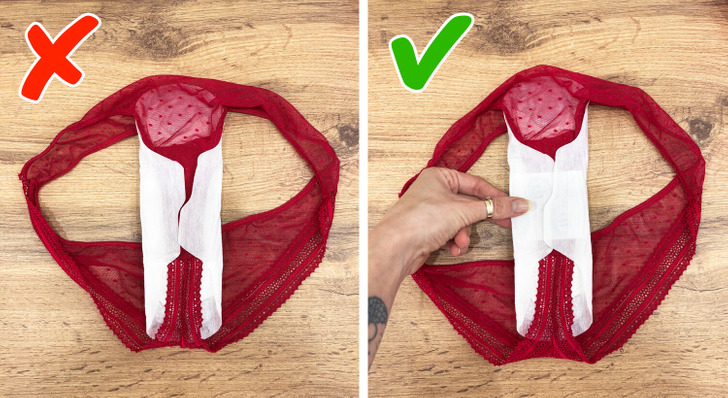 - Вместо того, чтобы приклеивать крылышки прокладок прямо к нижнему белью, подложите туда бумажку. В этом случае крылышки не отклеятся от ткани и прокладка не будет сползать. © dearlovio