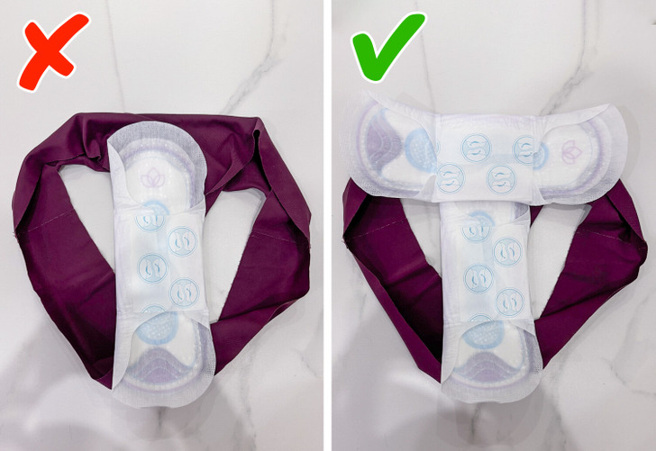 - При отсутствии под рукой ночных прокладок, можно избежать конфуза утром, используя две обычные прокладки. Наклейте их перпендикулярно друг другу и сцепите «крылышками». © Purewow