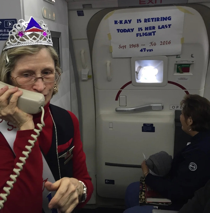 «Эта стюардесса летала 47 лет, сегодня ее последний полет. Вот как ее провожают на пенсию»