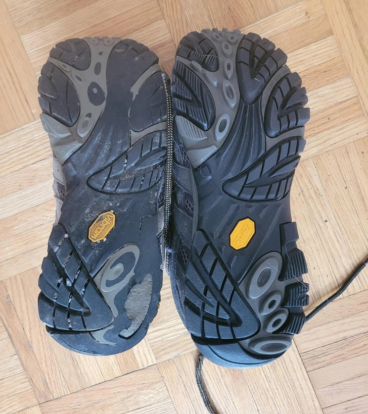 «Моя работа предполагает много пеших прогулок, так что обувь я меняю часто. Слева — поношенный ботинок» Зато вон как нога выросла, на целых два размера!
