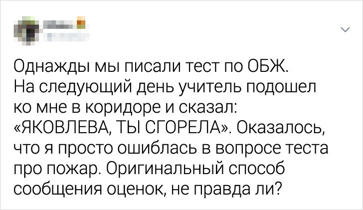 У меня в школе как-то никакие фразы учителей не запомнились, а в универе, как сейчас помню, заявила мне препод по теории государства и права (по совместительству - завкафедрой) на экзамене по своему нудному предмету - я вам даже «хорошо» поставлю, но это не важно, я хорошо чувствую студентов и их перспективы, так вот про вас на 100% скажу - юристом вы не будете, никогда. Уж не знаю, хотела ли она меня подстегнуть или что, но часто вспоминала ее слова, в т.ч. недавно, когда выиграла дело на стадии кассации в Верховном суде РФ (дело это даже теперь уже бывший начальник считал безнадёжным, я эту кассацию прям выпросила). Обиды на преподавателя не держу, просто вспоминаю, каким безапелляционным тоном мне были сказаны те слова. И беззлобно улыбаюсь.))