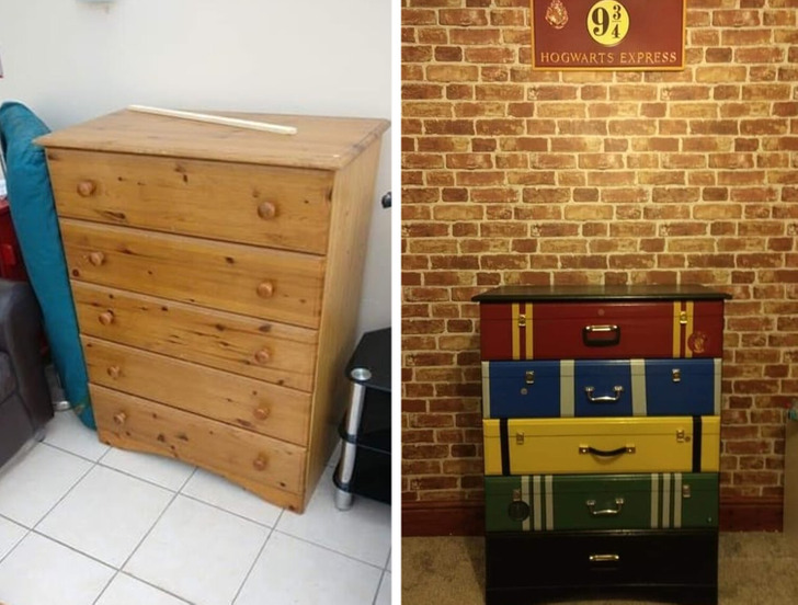 «Этот комод достался нам за копейки. Мы переделали его специально для нашей дочки, невероятной фанатки Гарри Поттера»