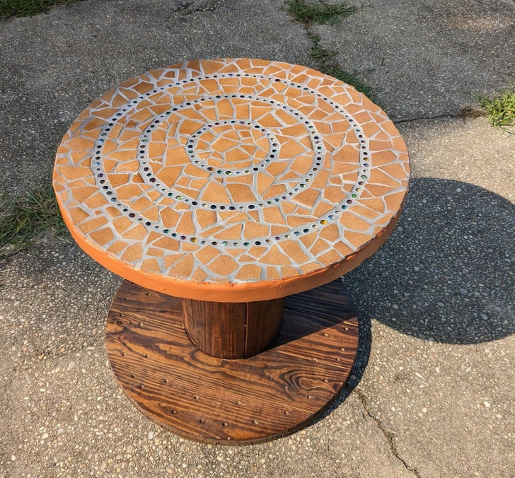 «3 года я не могла закончить этот мозаичный столик. И вот, наконец-то, собралась с силами и доделала. Мне кажется, он напоминает жирафа»