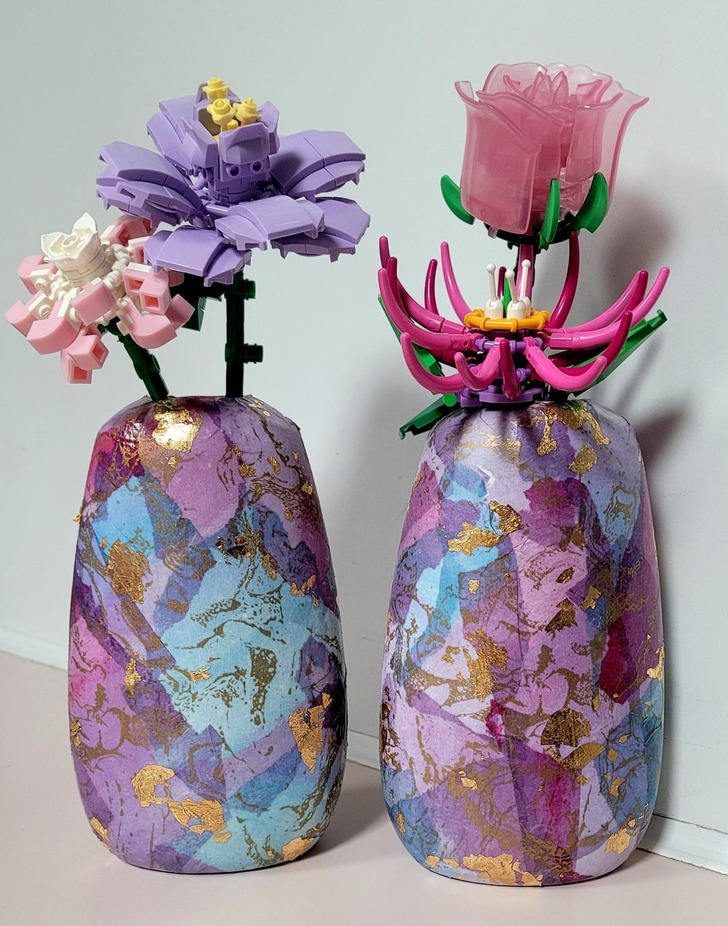«Для моих Лего-цветов нужны были вазы. Так что я превратила в них две старые бутылки из-под жидкого мыла»