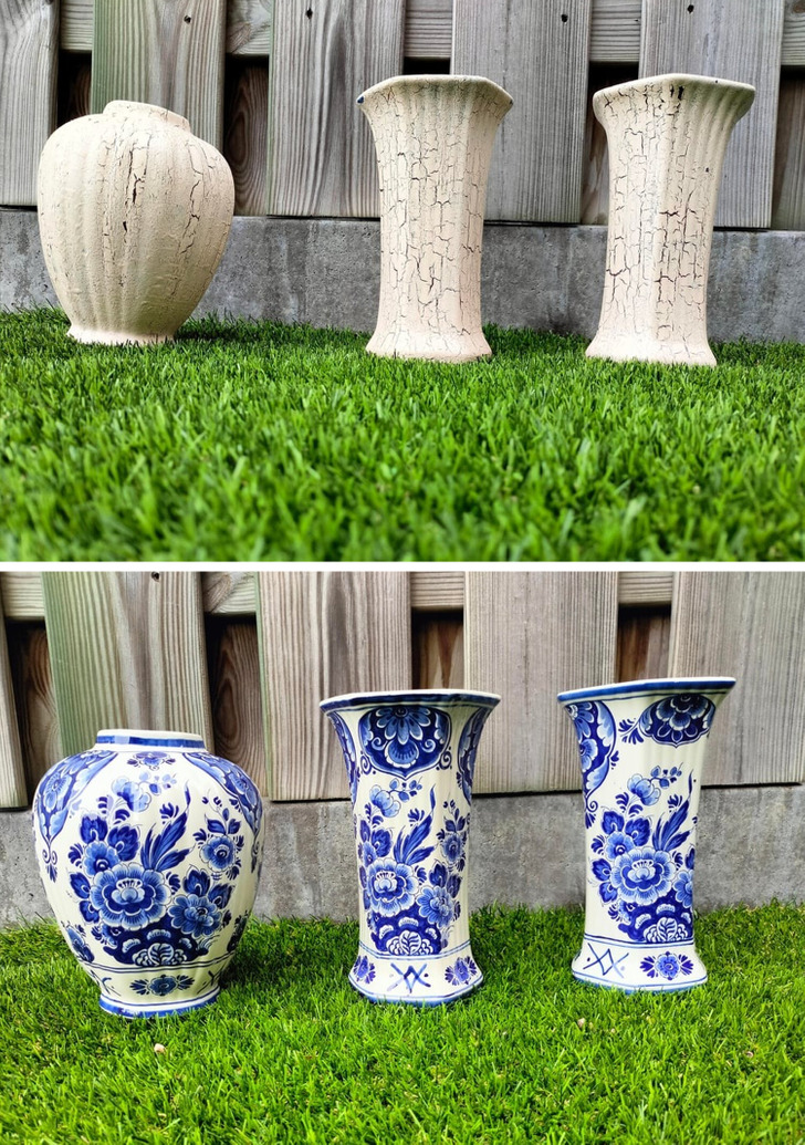 «8 лет назад купила вазы на барахолке и только сейчас дошли руки снять краску. Кто ж знал, что там такое сокровище!»