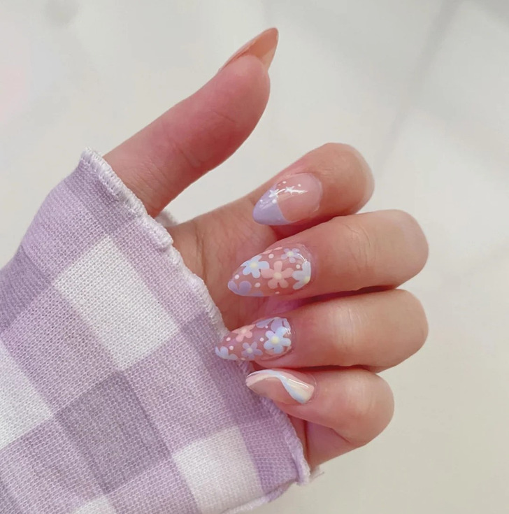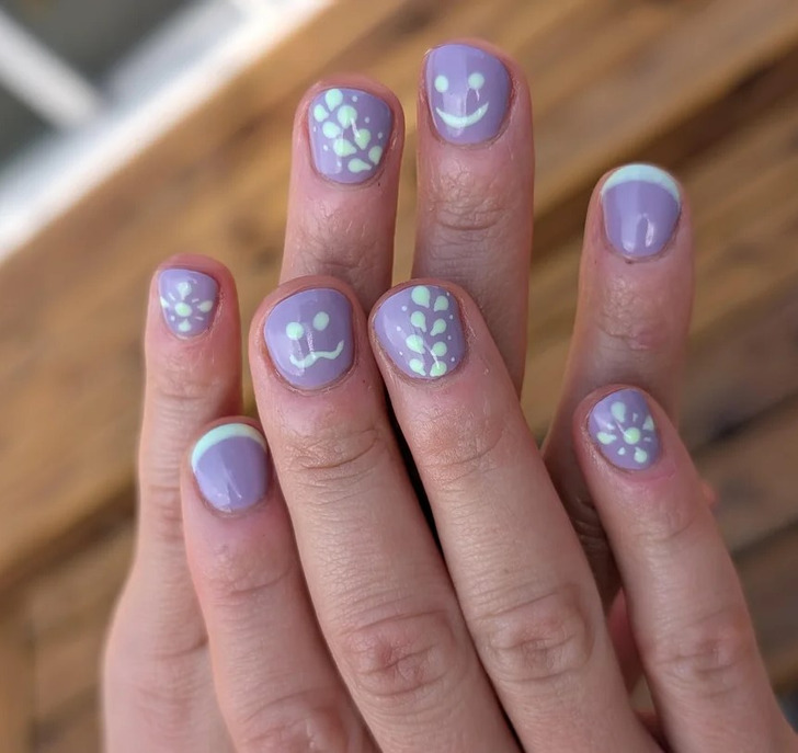«Попрактиковалась с новыми кисточками и сделала маникюр в весенних цветах»