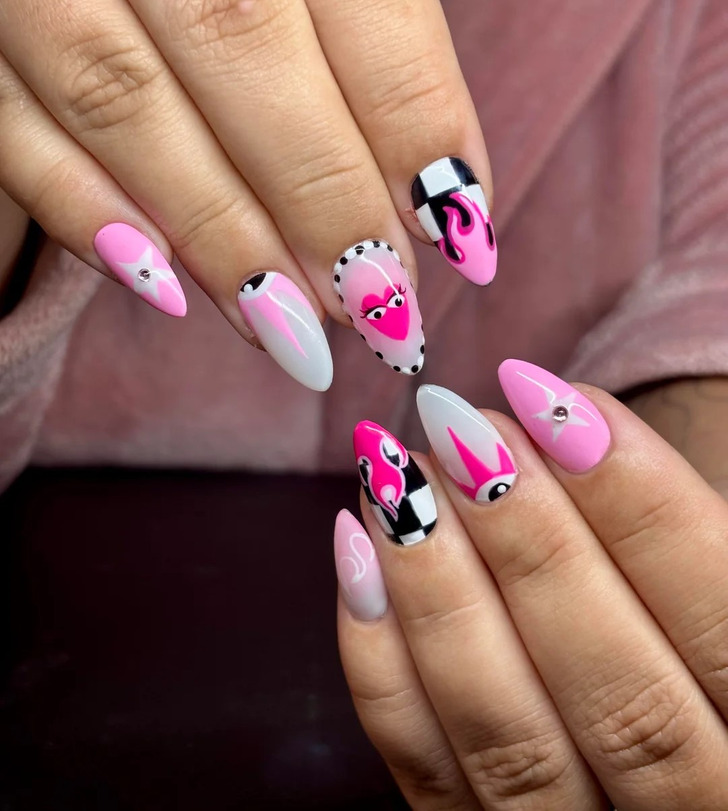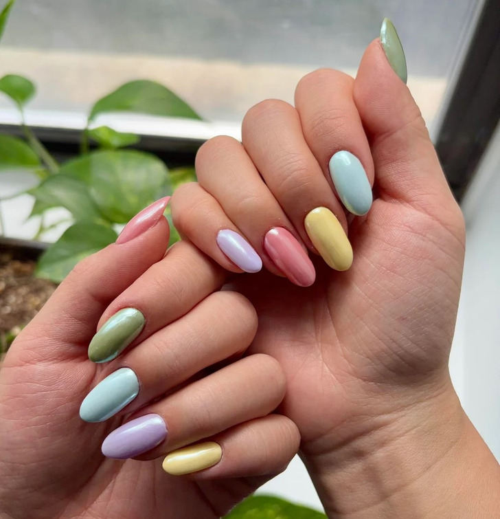 «Решила поэкспериментировать с белым хромом. Потратила на маникюр кучу времени, но оно того стоило. Мои весенние ногти в пастельных тонах»