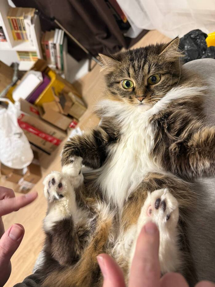 «Достали кошку из подвала, пристроили. Отличная кошка-подружка получилась. Даже на работу готова с хозяйкой ходить, но та не берет»