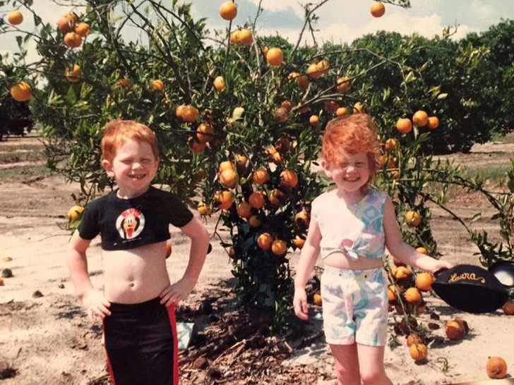 «1992 год. Я и моя сестра. По дороге из Диснейленда мы остановились, чтобы собрать апельсины»