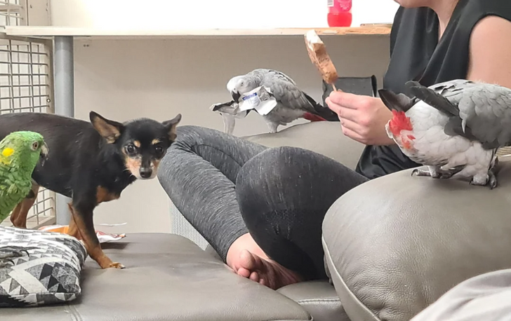 «Моя жена пытается съесть мороженое. На этот раз все прошло довольно успешно: слетелись всего 3 из 20 попугаев и одно существо, похожее на собаку»