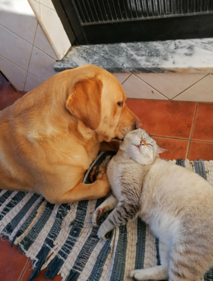 Я обзавидовалась! Наша собака привыкала к каждому новому котёнку очень долго, месяца 2-3. При том, что к людям добрая. Однажды не уследили и загнала котёнка в угол. Мелкая расцапапала собаке нос, а её самое пришлось мыть от слюны, сейчас спокойно ходят мимо друг друга.