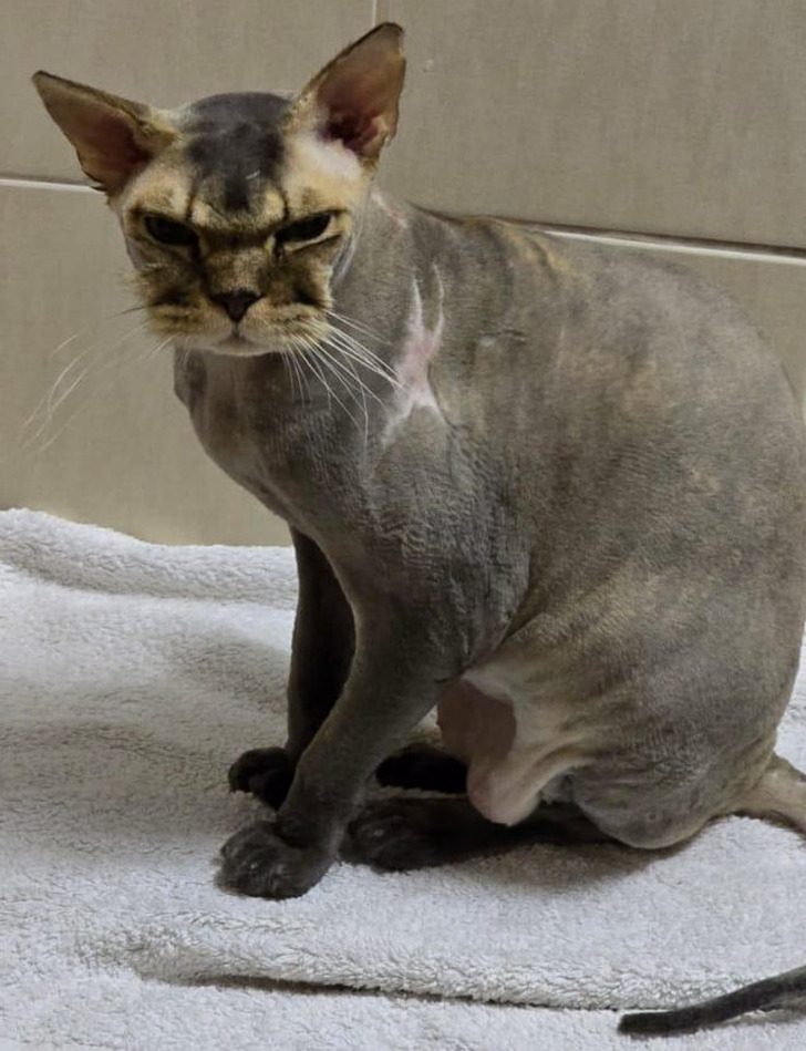 «Ветеринару пришлось побрить нашего кота. Мы думаем, он недоволен стрижкой»
