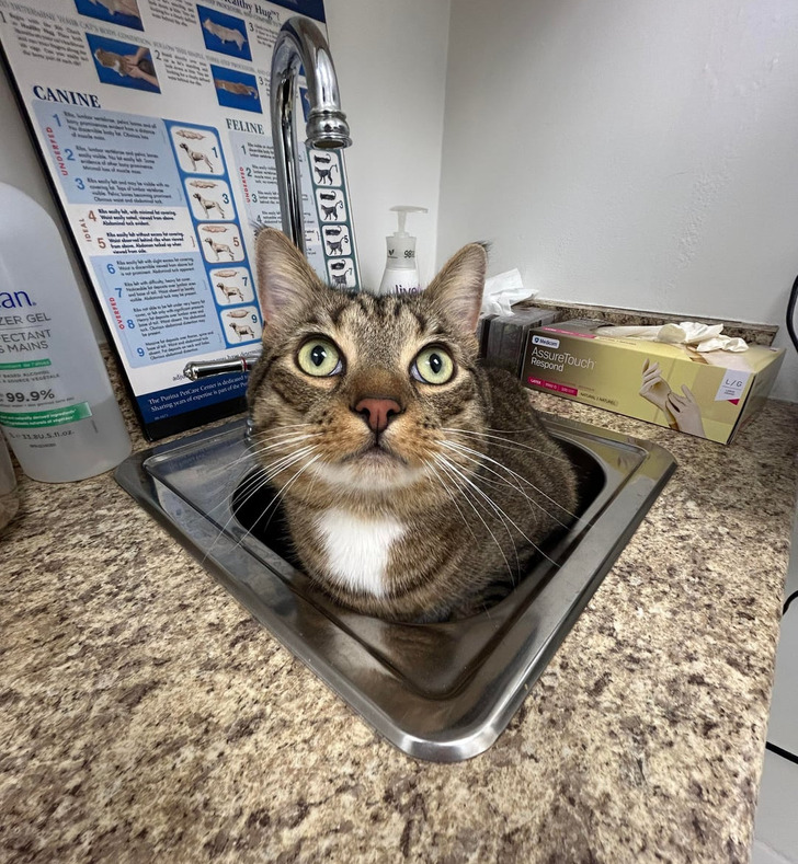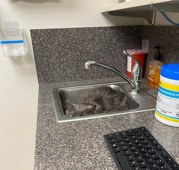 • Была у нас трехцветная кошечка, которую ни как не удавалось успокоить. Ветеринар ей зубы хочет посмотреть, а она забилась в угол и не дается. В итоге доктор к кошке подошел и начал ее дразнить, пока она не зашипела. «С зубами все отлично!» — сказал он и вышел из кабинета. © Negative_Corner6722 / Reddit