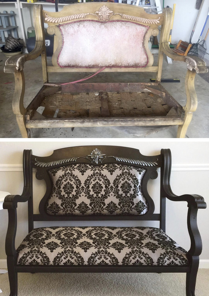 «Мой первый проект по обивке мебели. Хотя это была, скорее, реставрация, так как я разобрал все до каркаса»