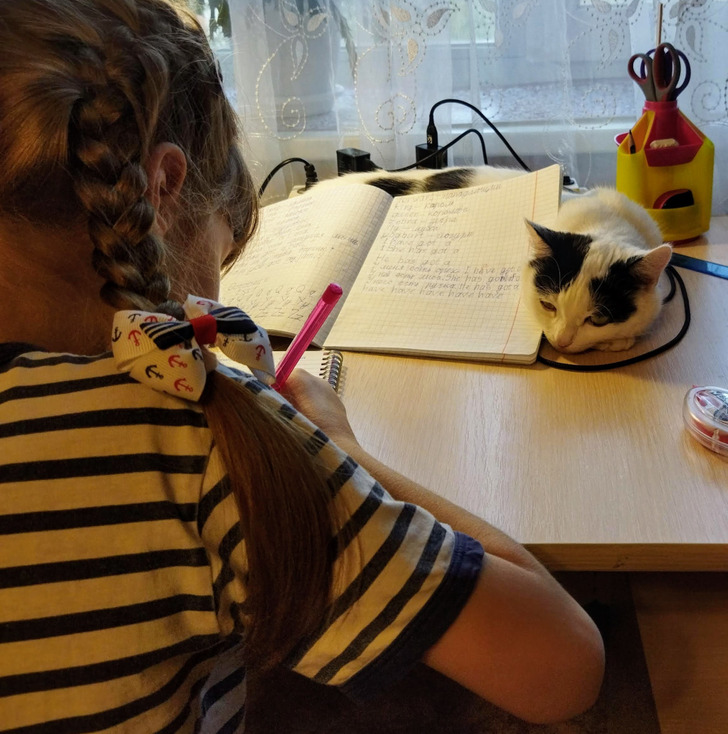 «Если подставка для книг забыта в школе, то на помощь приходит пушистый держатель»