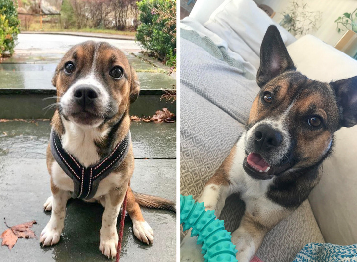 «Моя девочка Люся — смесь бордер-колли и французского бульдога. На первом фото ей 9 месяцев, а на втором — 1 год»