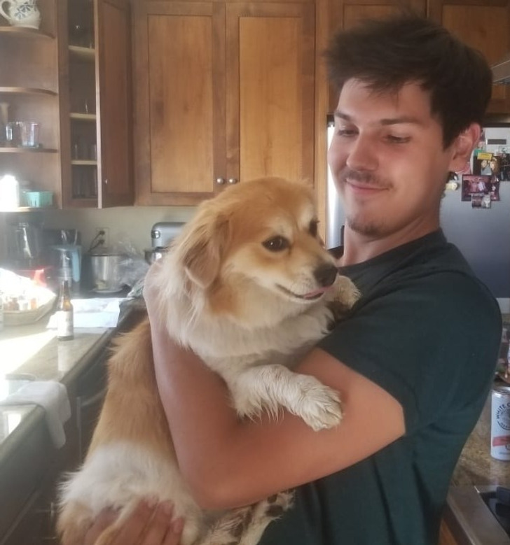 «Это Бо. Мы взяли его из приюта 5 лет назад. Он — помесь немецкой овчарки и корги, и самый лучший мальчик на свете!»