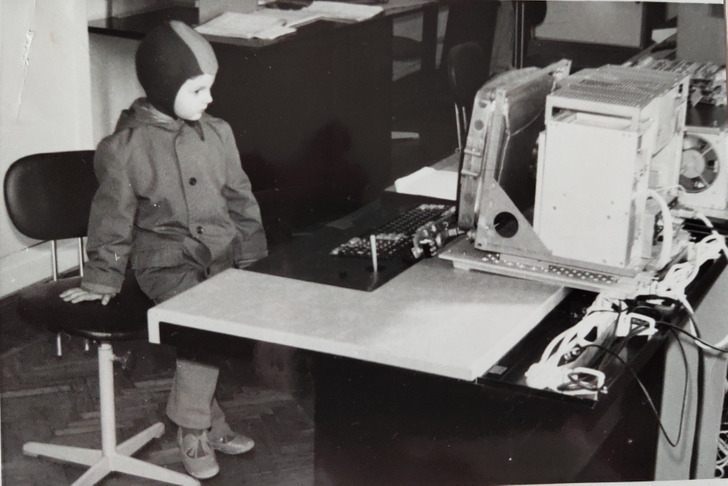 «У бати на работе, 83 или 84 год. Тогда это казалось фантастикой, кнопочки нажимаешь, а оно зелененькими буковками и циферками печатает, какие-то перфокарты жрет»