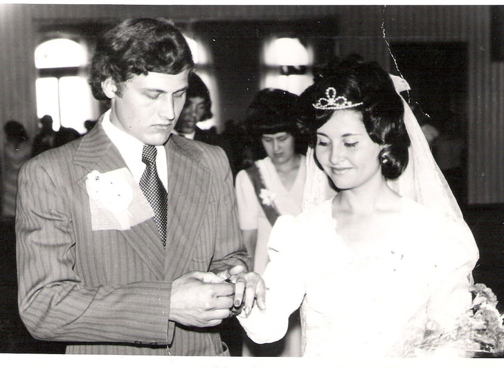«Ровно 55 лет назад. Это мои родители после бракосочетания, счастливые»