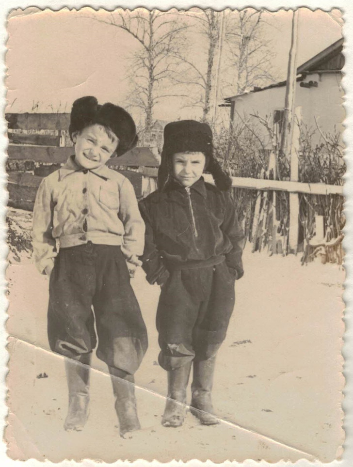 «Этому фото 70 лет. Глухая деревня в Сибири. Малец, наклонивший голову, мой будущий отец, будущий кандидат наук. Рядом с ним его брат, мой будущий любимый дядька»