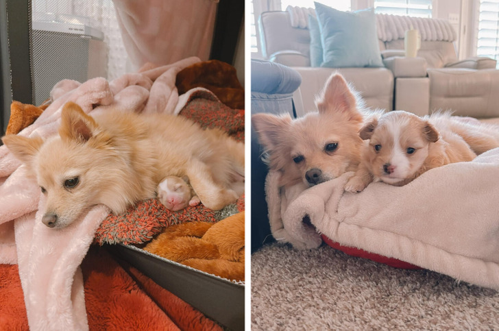 «Из-за собаки, которую я спасла с улицы, мне придется серьезно поговорить с лэндлордом, ведь она родила еще и совершенно очаровательного малыша!»