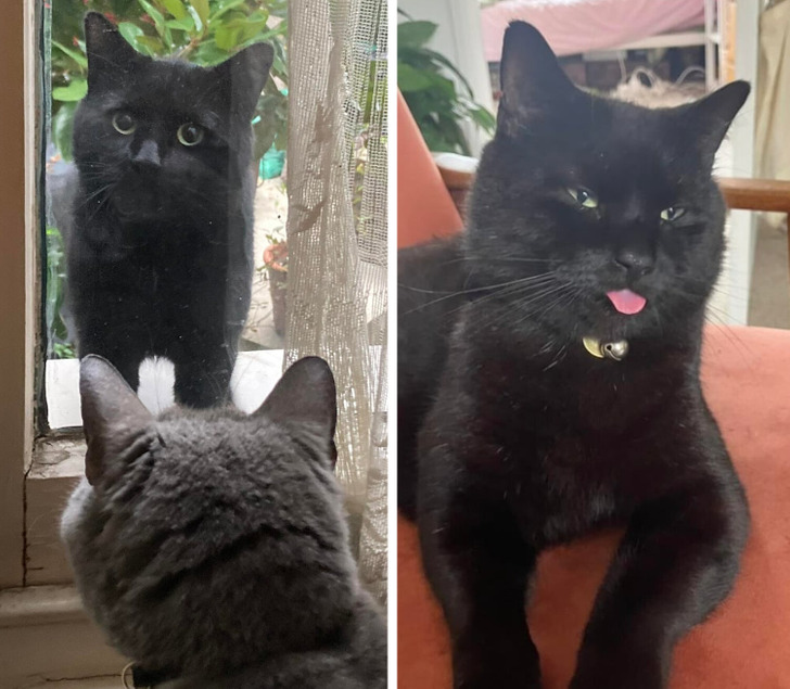 «Два года назад мы нашли пару котят, прячущихся под машиной на раскаленной парковке. Лили (полосатая) — самая милая и ласковая кошечка из всех, кого я знала, а Зимми (черненькая) — наша оторва»