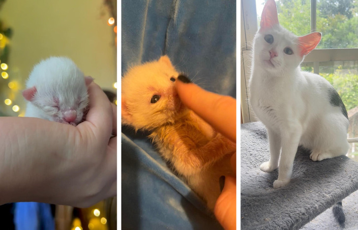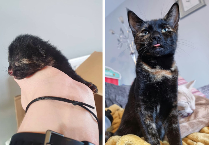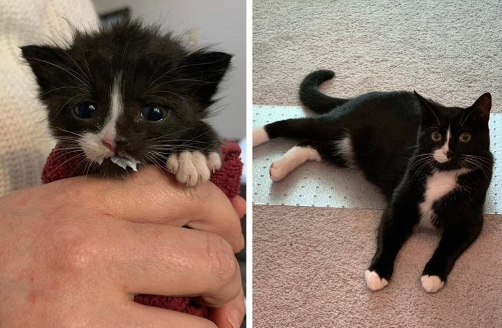 «Соседка нашла у себя на участке крохотного новорожденного котенка и уговорила меня забрать его. Он был в тяжелом состоянии и ему пришлось пройти через многое. Он вырос таким хорошим мальчиком!»