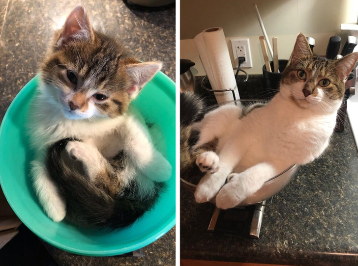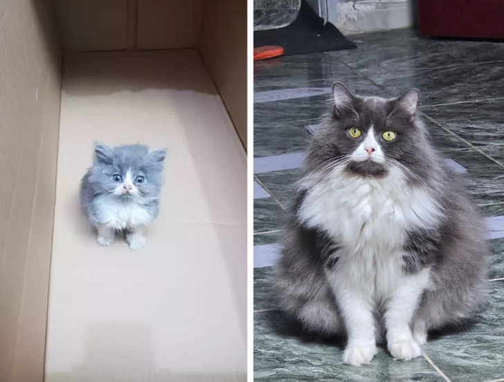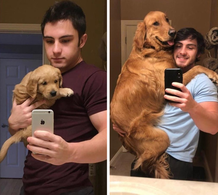 У нас складывается такое ощущение, что дни пролетают один за другим гораздо быстрее, чем раньше. И ничто так наглядно не показывает эту разницу, как фото «до и после». Герои этой подборки решили показать это на примере своих питомцев и получилось что-то с чем-то. Как такое вообще возможно, чтобы за каких-то несколько месяцев щеночек вымахивал до размеров теленка, а крошечный малыш, который помещался в ладони, становился роскошным котярой?