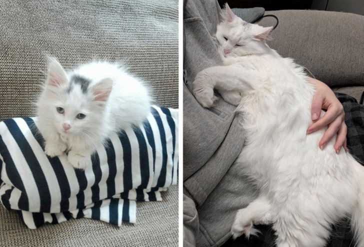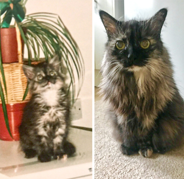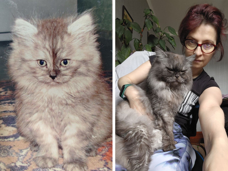 «На первых фотках ему 2 месяца, наверное. А сейчас ему 18 с половиной лет. Не я его хозяйка, а моя свекровь. А я с котом знакома прекрасные 9 лет. О! Прикиньте, он меня полжизни знает»