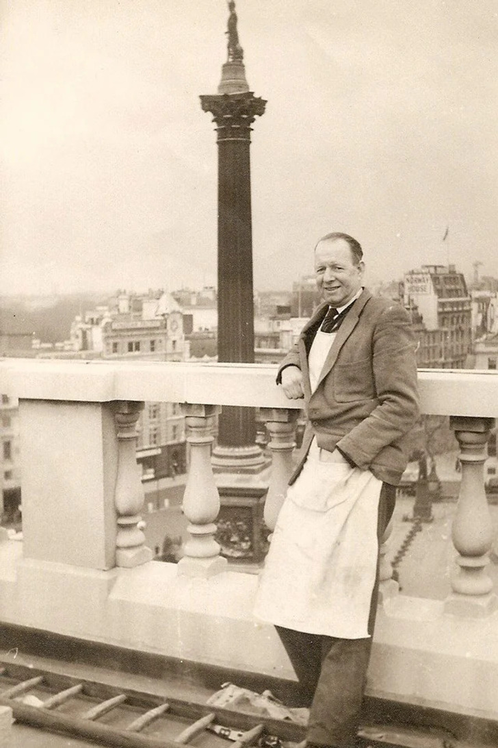 «Дедушка над Трафальгарской площадью в Лондоне выполняет плотницкие работы»