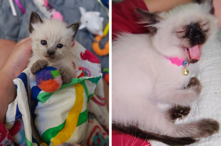 «Нашли ее ночью на улице и быстренько забрали. Она была худая, а шерсть выпадала от стресса и голода. Теперь это наша пушистая булочка»