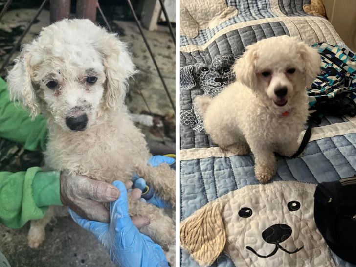«Месяц назад я нашла этого красавчика. Теперь он просто сияет! Добро пожаловать в семью, Вафелька»