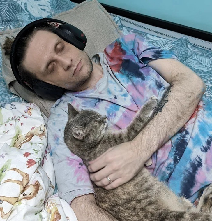 - У мужа и кота каждый вечер был своеобразный ритуал. Как только муж ложился спать, Тихон укладывался ему на грудь и начинал громко мурчать. Так и засыпал. Супруг осторожно снимал кота с себя, укладывал рядом и шел менять футболку, потому что на груди расплывалось огромное пятно от котовых «соплей счастья»! Утро тоже было традиционным. Тихон внимательно смотрел на часы. Как только на табло зажигалось 5-00, начинал методично стучать тапком мужа. Пришло время коте завтракать! Чего спите-то? Хорошо, что супруг у меня жаворонок, а то бы кушал этот нахал часиков в 9! © Ирина Александровна / ADME