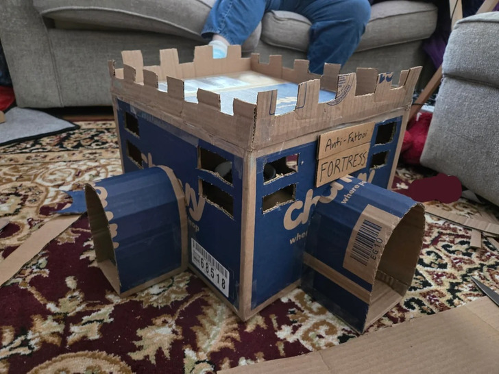 Все мы знаем: котики любят коробки. И вот наглядный пример, как хозяева построили целый «обеденный» замок для своего питомца, которому нужно было меньше кушать