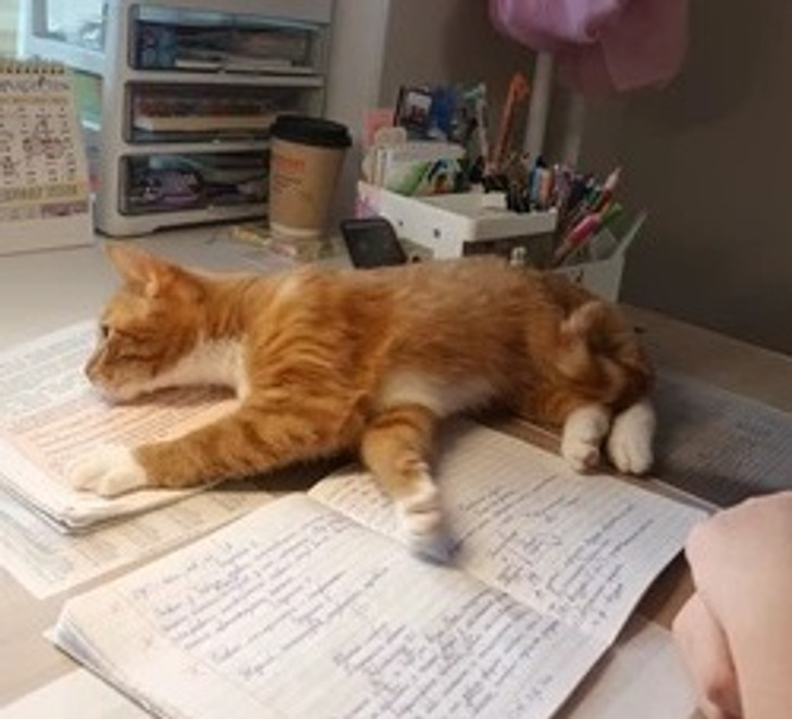 Этот кот, кажется, серьезно контролирует выполнения домашних заданий