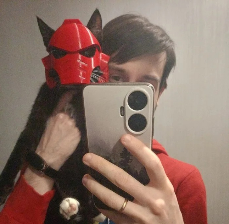 «У нас есть 3D-принтер для крайне важных нужд. Например, красный шлем космодесантника для кота вот сделали. Муж кота не хотел, кстати»