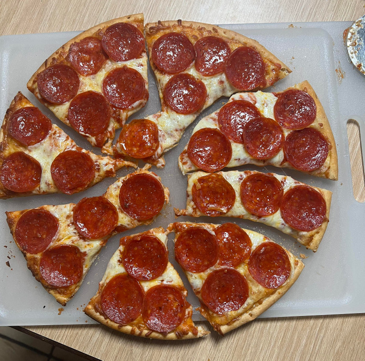 «Папа нарезал пиццу так, чтобы не задеть колбаску»