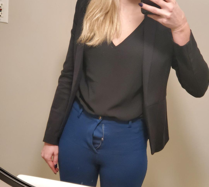 Почему дева вообще решила, что в таких брюках можно выйти из дома? Они настолько в обтяжку, что там o.b. видно