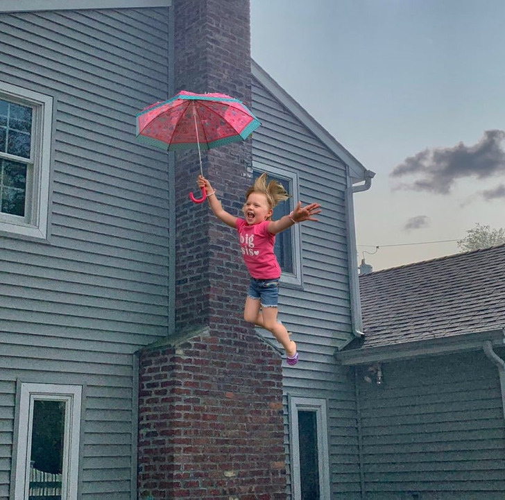 Надеюсь, девочка с зонтиком просто прыгает на батуте