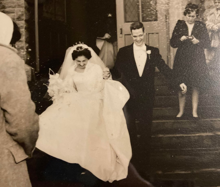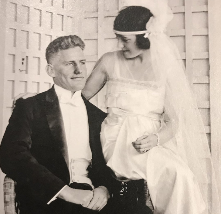 «Мои бабушка и дедушка в день свадьбы. Ему здесь 24, а ей — 22»