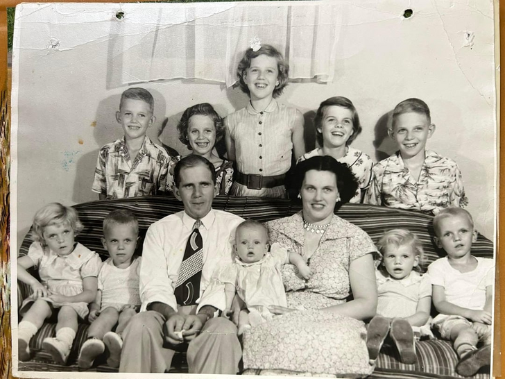 «Семейное фото 1954 года. Представляете, у моих бабушки и дедушки потом родилось еще семь детей!»