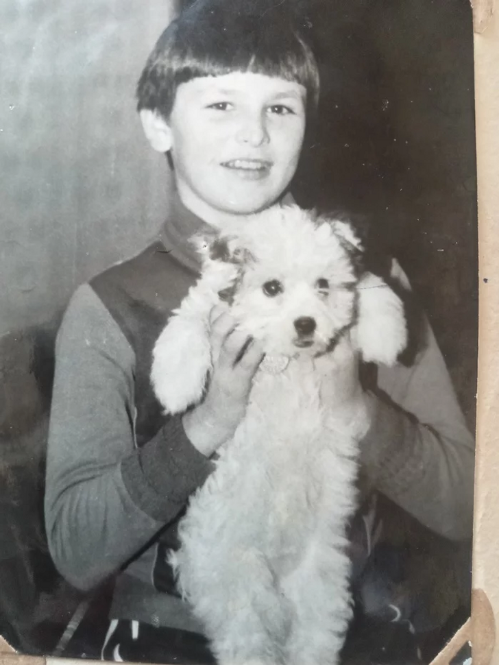 «Был у мамы, сфоткал наш семейный альбом. На этом фото я и щенок Булька, 1987 год»